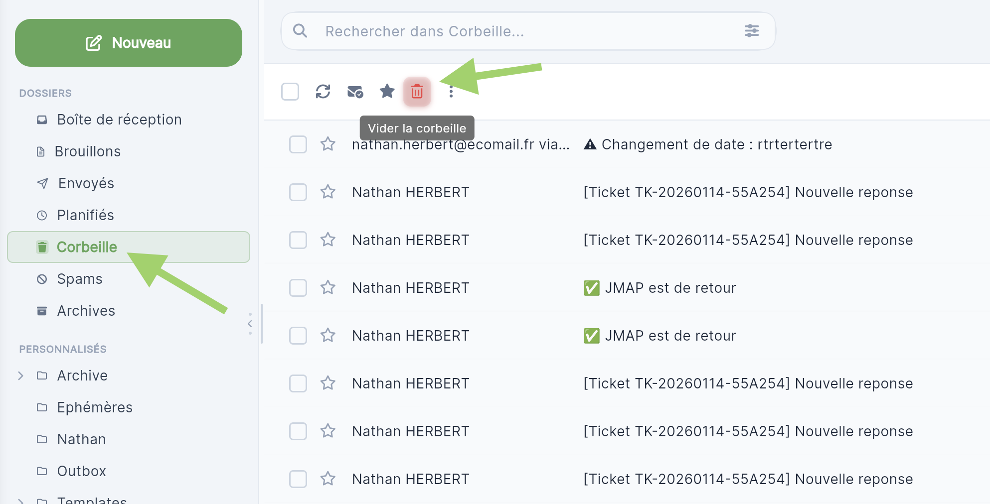 Vider la corbeille de ma boite mail Ecomail