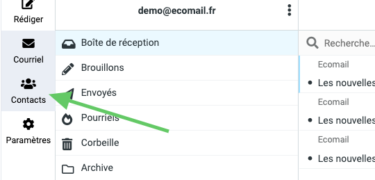 Dans le menu de gauche, cliquez sur messagerie ou cliquez sur https://mail.ecomail.earth/inbox