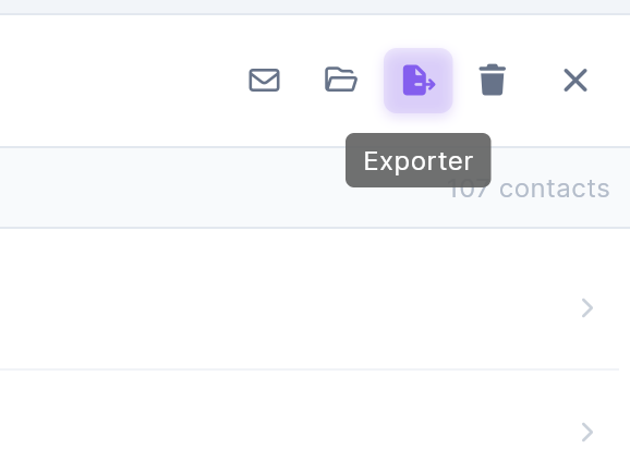 Pour exporter un seul contact, cochez la case à gauche du contact puis cliquez sur "Exporter".