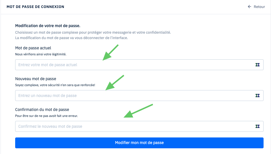 Patientez 1 minute puis reconnectez-vous avec le nouveau mot de passe.