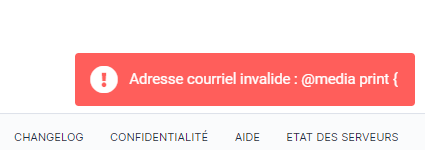 Sur l'ancien webmail, Roundcube. Si vous rencontrez le message d'erreur "adresse invalide" :