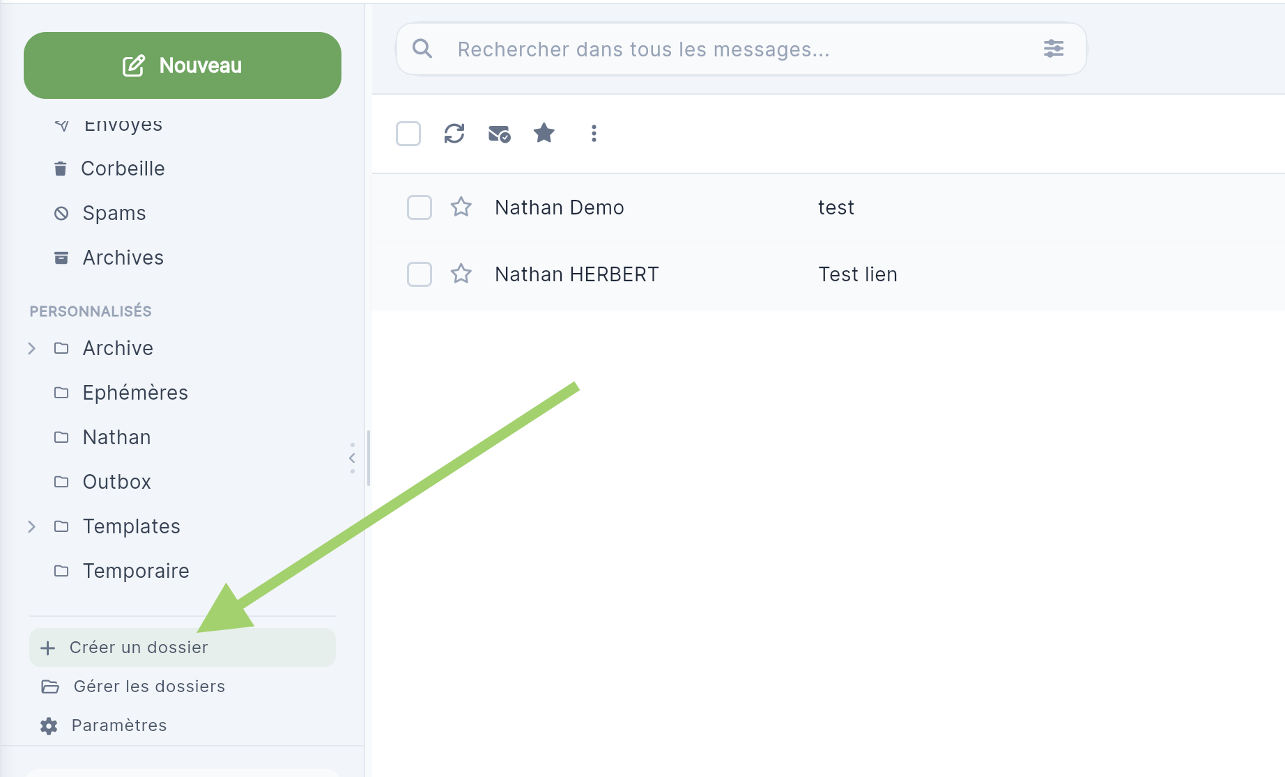 Créer des dossiers dans ma messagerie Pour créer un dossier dans votre messagerie : Tout en bas de la liste de vos dossiers, repérez le lien "Créer un dossier". Cliquez dessus, donnez un nom au dossier puis validez.