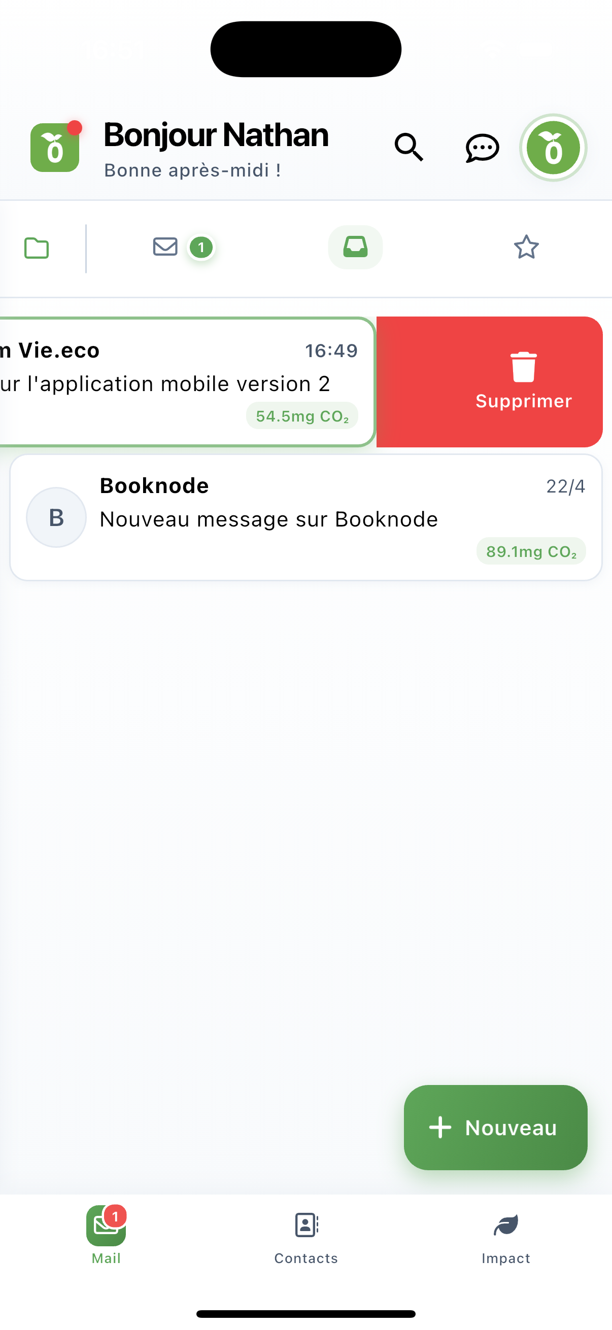 Si vous glissez de droite à gauche sur une conversation, cela vous permet de supprimer ce message ainsi que tous les emails liées (fonctionnement en conversation).