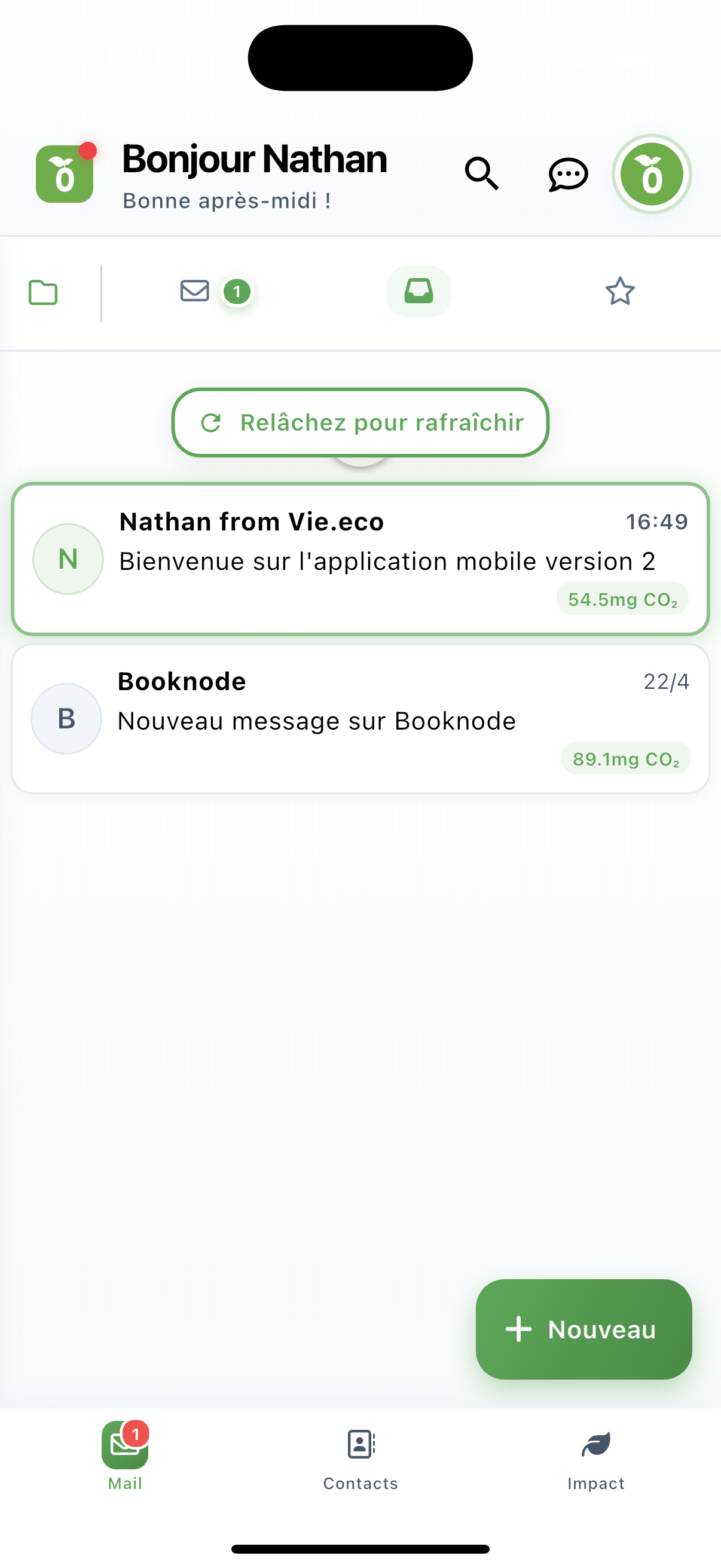 Lorsque vous êtes sur l’écran listant vos conversations, glissez votre doigt vers le bas pour lancer une actualisation de la liste de vos messages.